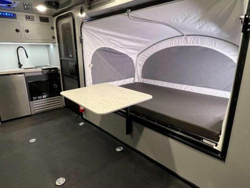 Sleeps 2 Length 14 ft 11 in Ext Width 7 ft 11 in Ext Height 7 ft 11 in Exterior Color Cobalt Blue, Copper Mine, Red Blaze; with White or Grey Hitch Weight 524 lbs GVWR 3850 lbs Dry Weight 1976 lbs Fresh Water Capacity 26 gals Tire Size ST235/75R15 LRC Furnace BTU 18000 btu Refrigerator Type 12V Refrigerator Size 3.3 cu ft Cooktop Burners 2 Axle Weight 3500 lbs Water Heater Type On Demand Axle Count 1 Electrical Service 30 amp Similar Floorplans