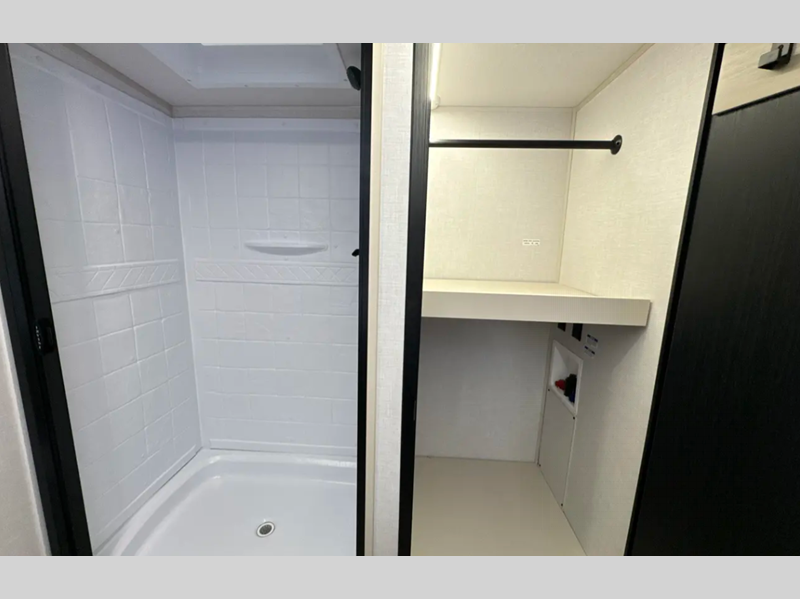 Sleeps 5 Slides 2 Length 33 ft 10 in Ext Width 8 ft Ext Height 11 ft Hitch Weight 1195 lbs Dry Weight 8338 lbs Cargo Capacity 1657 lbs Fresh Water Capacity 57 gals Grey Water Capacity 66 gals Black Water Capacity 30 gals Available Beds Queen with Versa Tilt Refrigerator Type 12V Refrigerator Size 10 cu ft Cooktop Burners 3 Shower Size 30" x 36" Number of Awnings 1 Water Heater Type On Demand Tankless AC BTU 31500 btu TV Info LR 50" LED Smart TV Awning Info 20' with LED Lights Axle Count 2 Washer/Dryer Available Yes Shower Type Walk-In Shower Electrical Service 50 amp Similar Floorplans