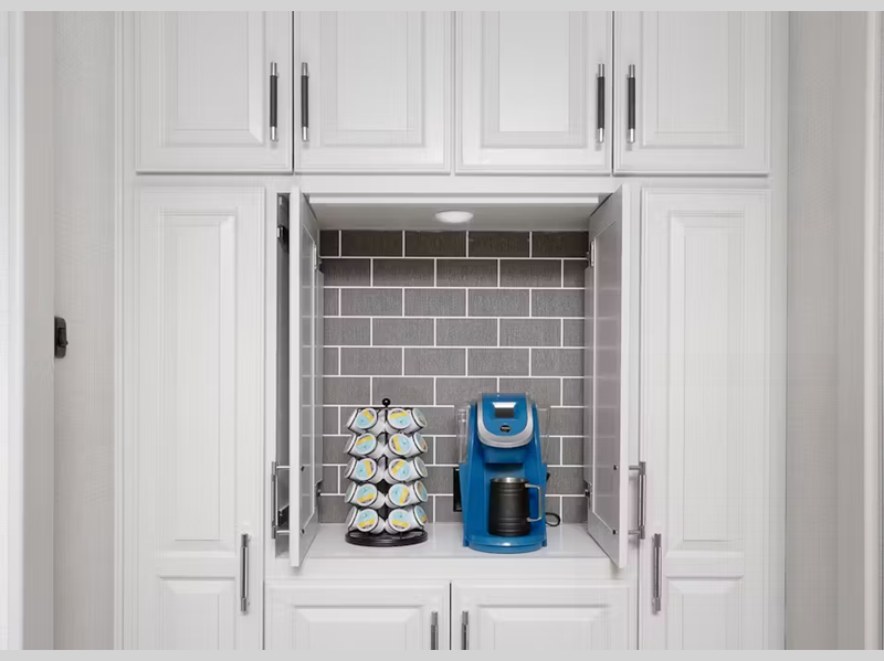 - Stunning solid wood cabinet doors, cabinet framing, and slide fascia