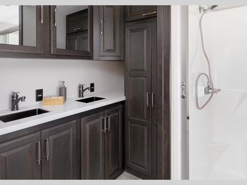 Sleeps 6 Slides 5 Length 41 ft 5 in Ext Width 8 ft 4 in Ext Height 13 ft 4 in Interior Color Lodge, Dovetail Exterior Color Blue Slate Full Body Paint, Copper Mist, Frost Black Hitch Weight 3186 lbs Dry Weight 14760 lbs Cargo Capacity 3240 lbs Fresh Water Capacity 75 gals Grey Water Capacity 78 gals Black Water Capacity 78 gals Tire Size 215/75R17.5H Furnace BTU 35000 btu Available Beds King Refrigerator Type Residential with Ice Maker Refrigerator Size 18 cu ft Convection Cooking Yes Cooktop Burners 3 Number of Awnings 2 Axle Weight 7000 lbs LP Tank Capacity 30 lbs Water Heater Type On Demand AC BTU 46500 btu TV Info LR 50" LED TV, BR Smart HDTV Awning Info 14' Carefree with Adjustable Arms Axle Count 2 Washer/Dryer Available Yes Number of LP Tanks 2 Shower Type Shower w/Seat Electrical Service 50 amp Similar Floorplans