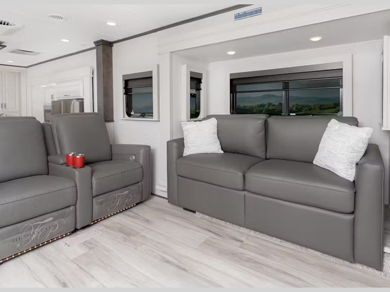 - Thomas Payne® furniture equipped w/ heat, massage, LED lights and USB charging stations in theatre seats