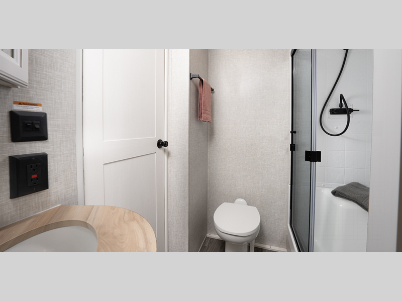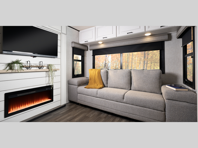 Each is built with a painted front cap with LED lighting, Keyed-Alike entry and baggage doors, and the mandatory Four Season package to help extend your camping season. Inside, you'll love the raised panel hardwood doors, roller blackout night shades, solid surface kitchen countertops, and more comforts!